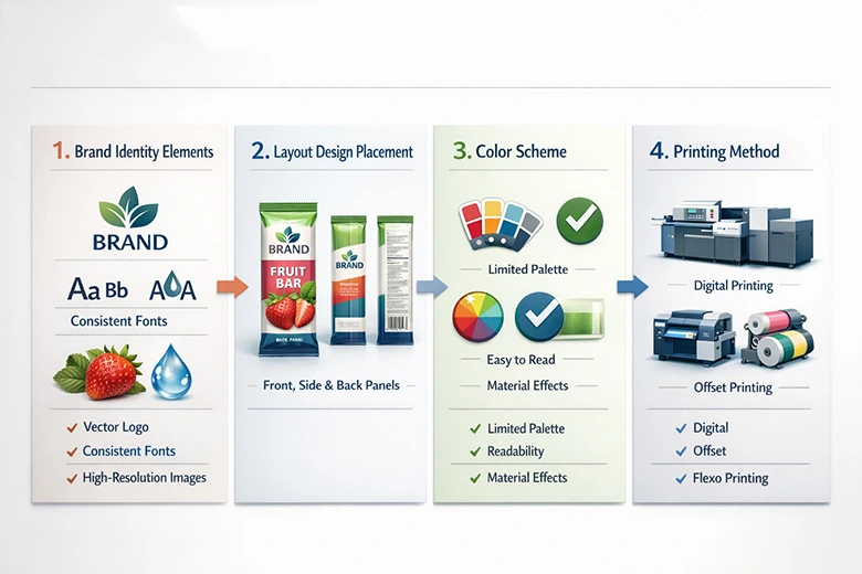 Make sure your logo is in vector format, your brand colors are defined in CMYK (not RGB), your fonts are consistent, and any images are high resolution, ideally 300 DPI, to provide sharp print quality. The goal is consistency across batches and vendors. When your packaging looks the same every time, customers learn to trust you. That trust turns into repeat purchases.